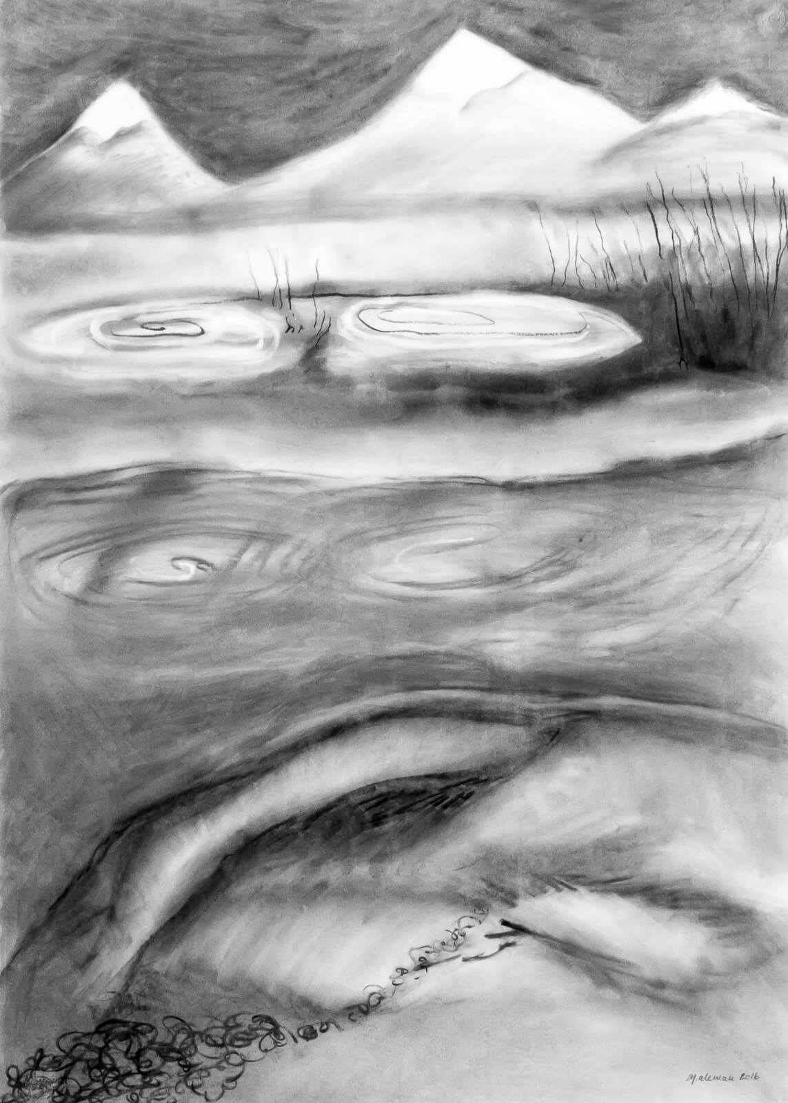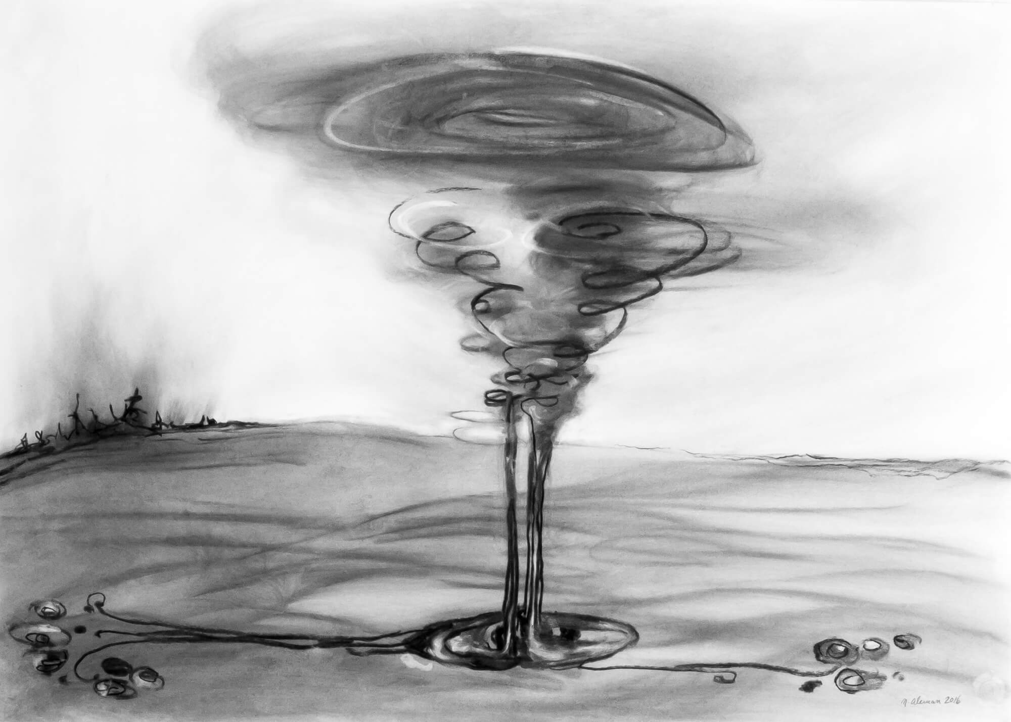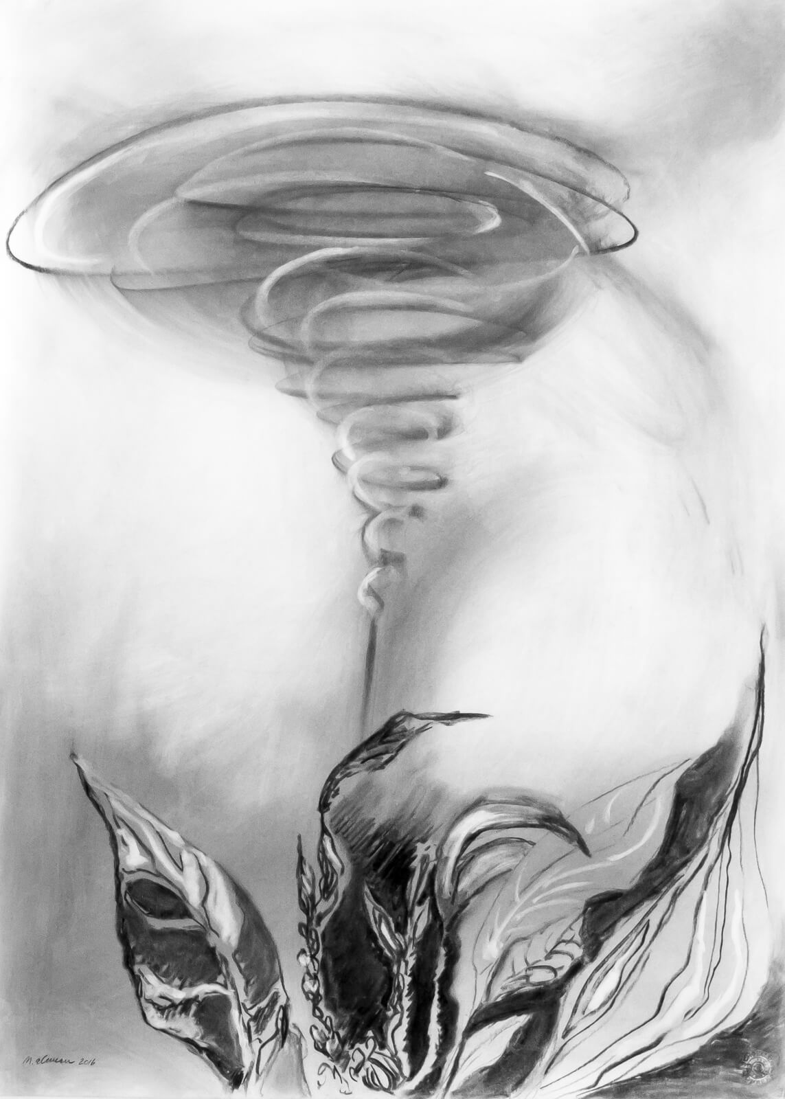 Axis Mundi 1:2, charcoal on paper, 70 x 50 cm