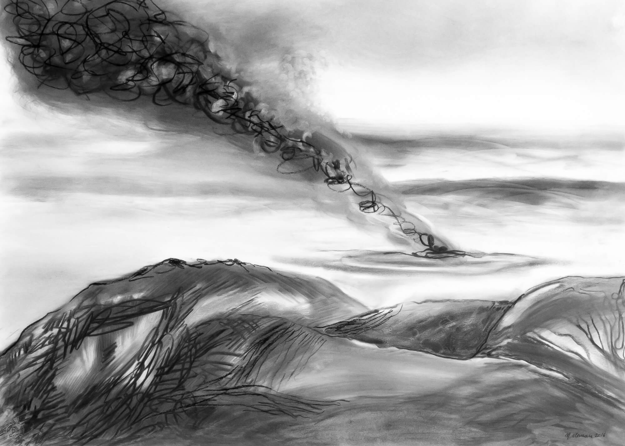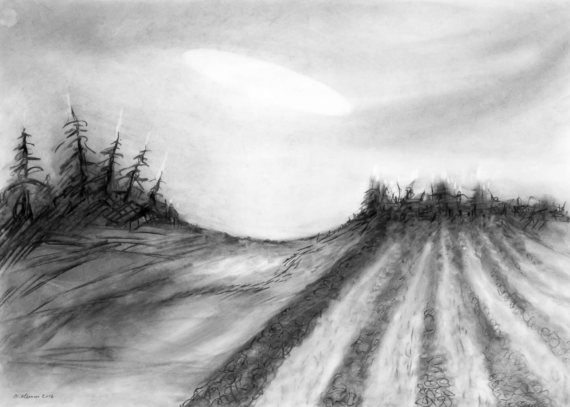 Axis Mundi 1:6, charcoal on paper, 50 x 70 cm